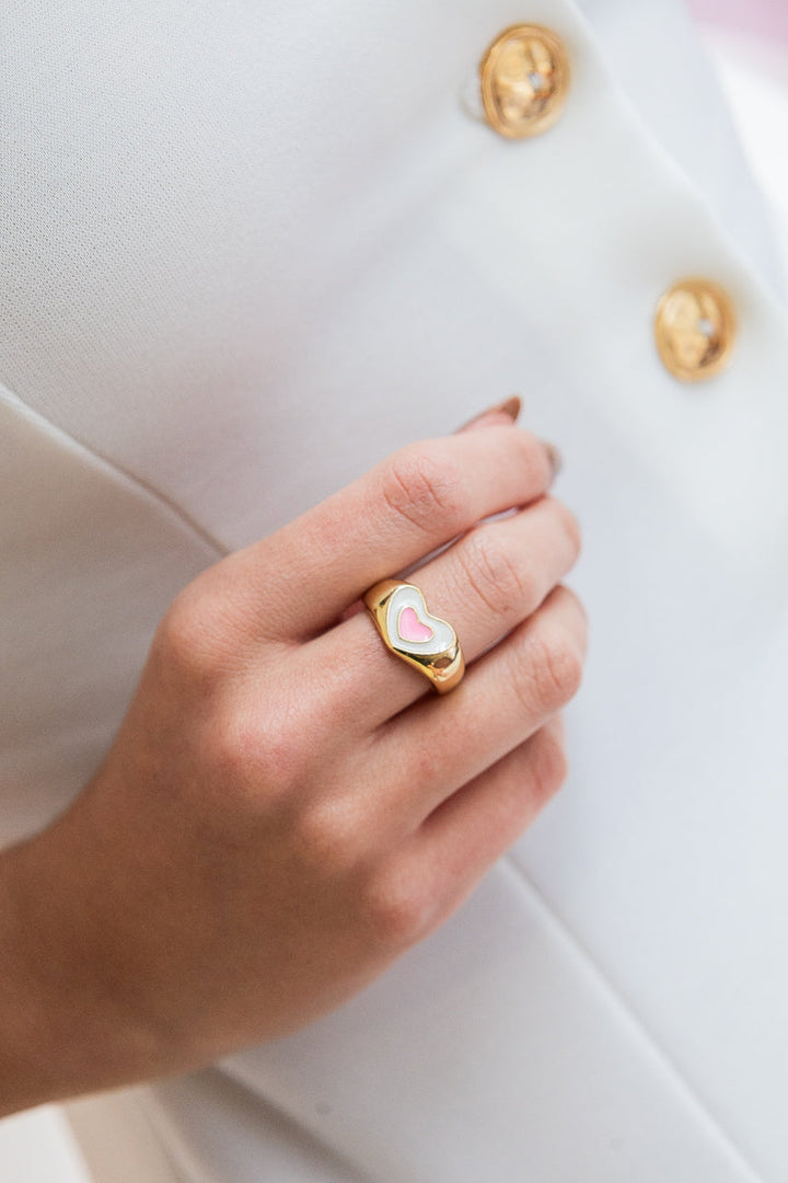 - Incluye: 1 anillo corazón rosado blanco.