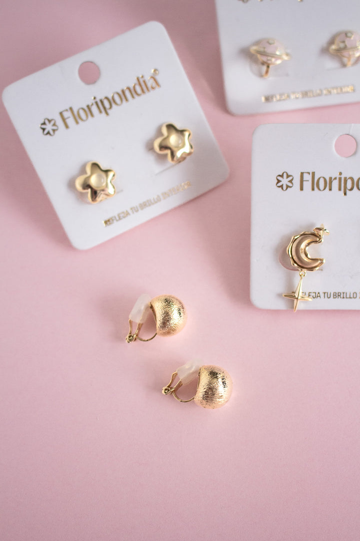 - Aretes de presión elaborados en Bronce con baño de oro de 24k.
