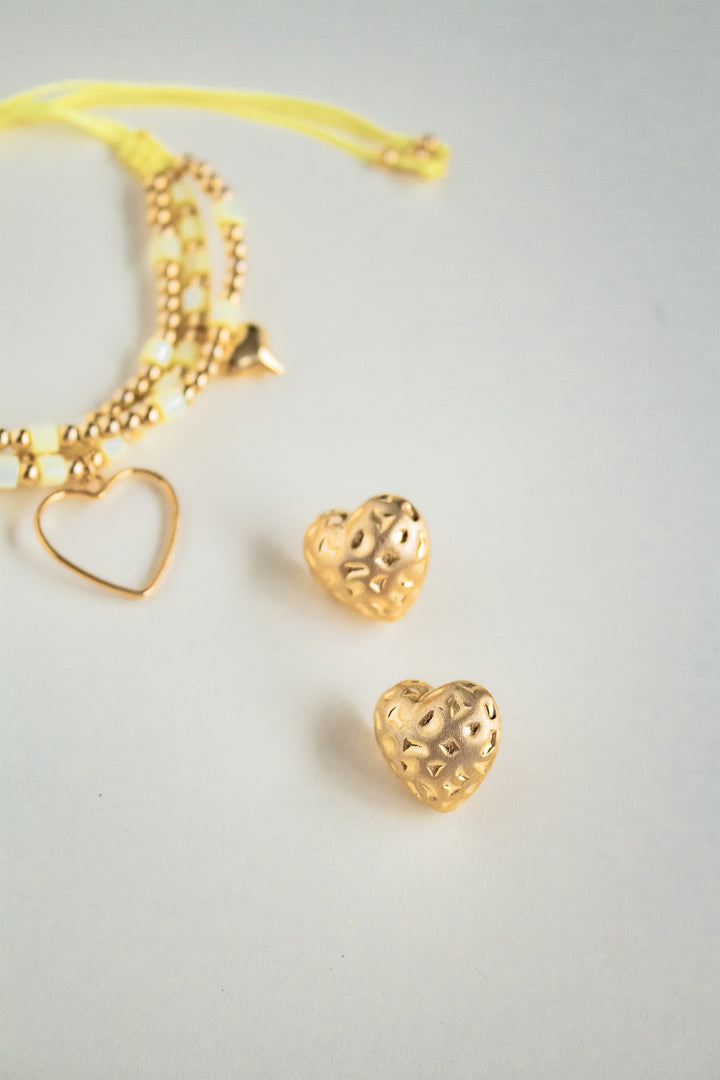 - Aretes elaborados en Bronce con baño de oro de 24k mate.