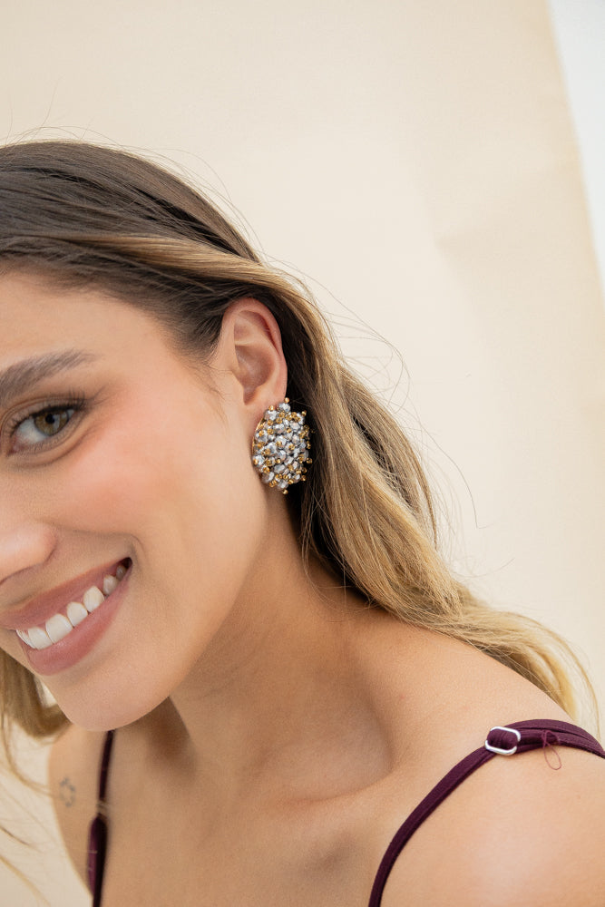 - Aretes elaborados en Bronce con baño de oro de 24k y tejido en múranos.