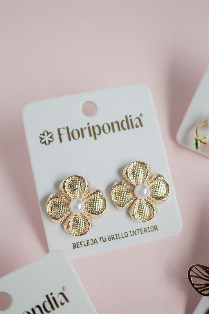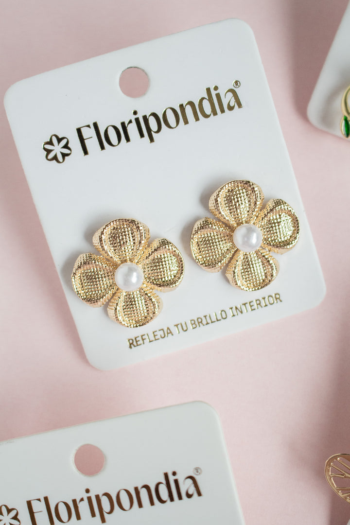 - Aretes elaborados en Bronce con baño de oro de 24k y perla.