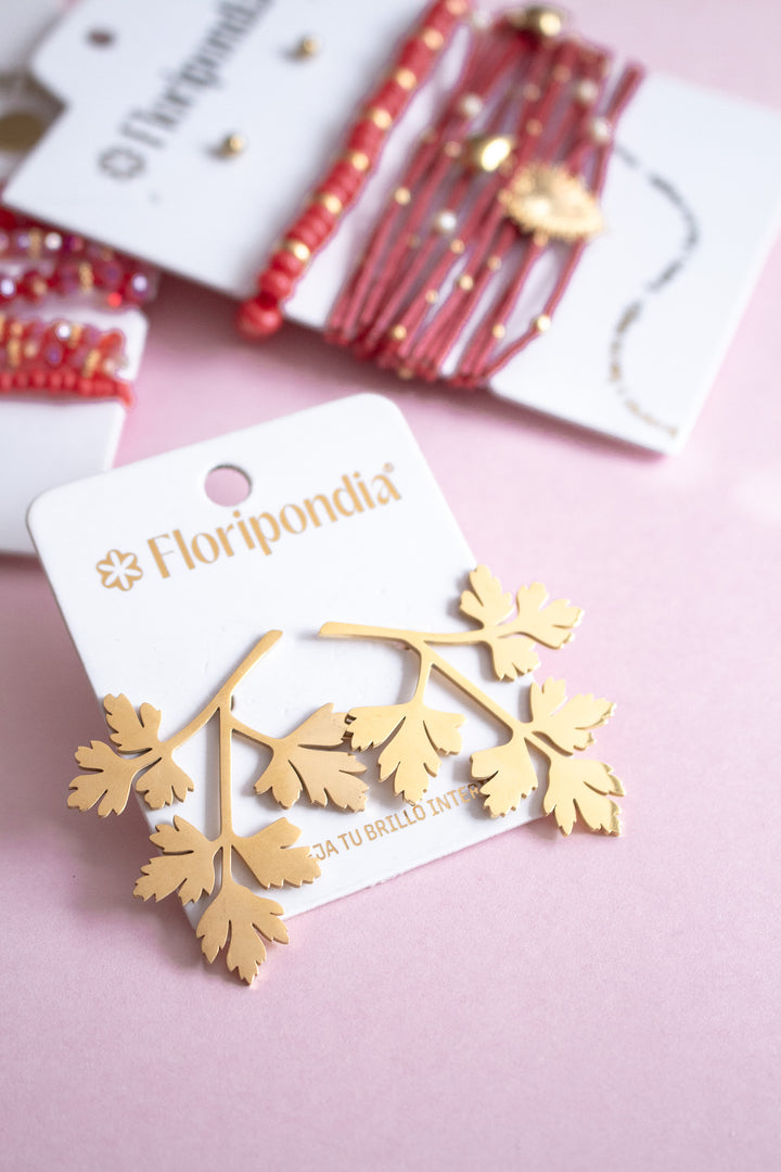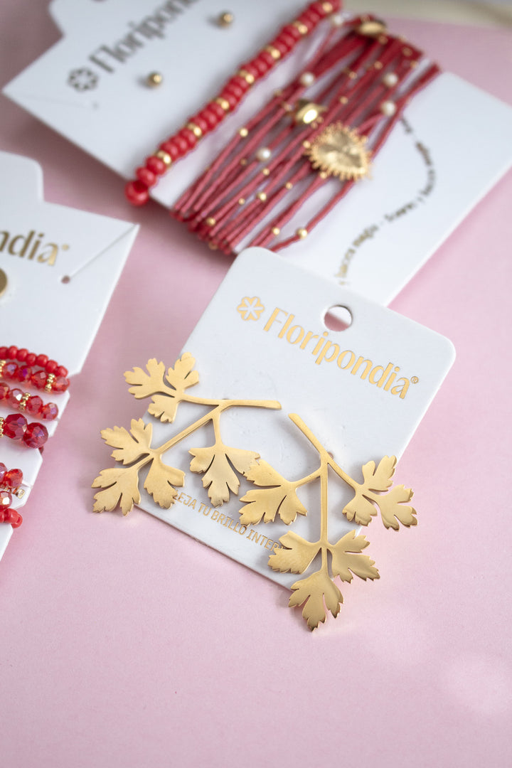 - Incluye: 1 par de aretes hojas tropicales.