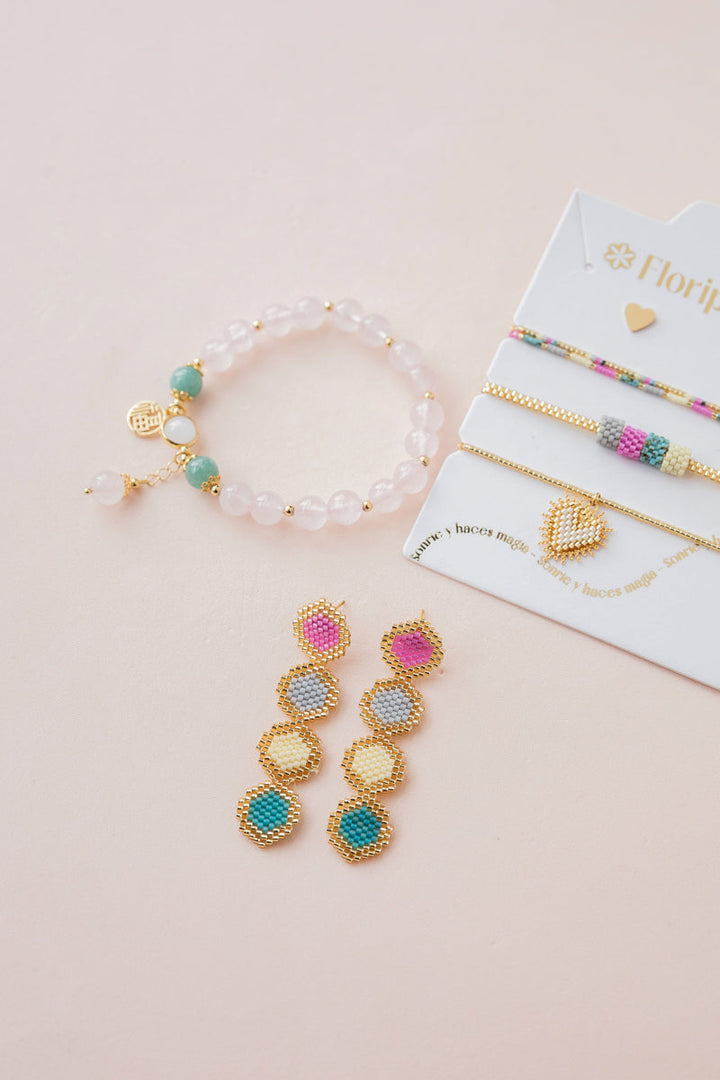 - Incluye: 1 par de aretes miyuki colores pasteles.