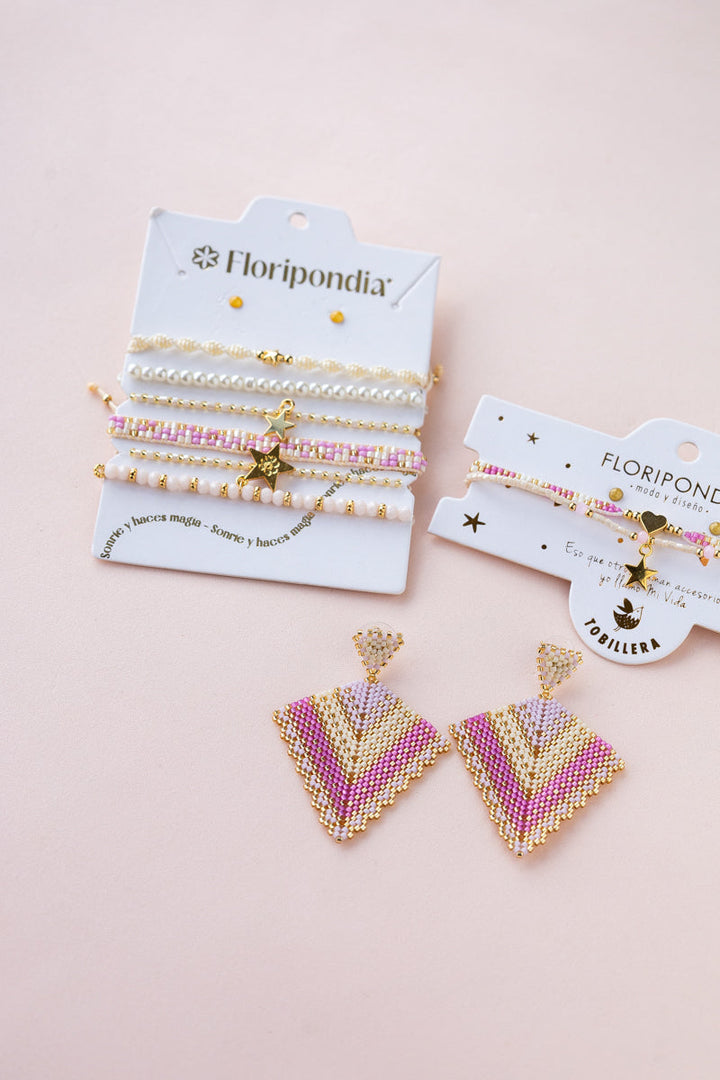 - Incluye: 1 par de aretes miyuki rosado combinados.