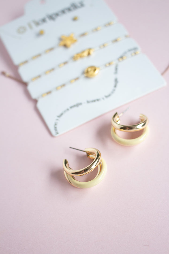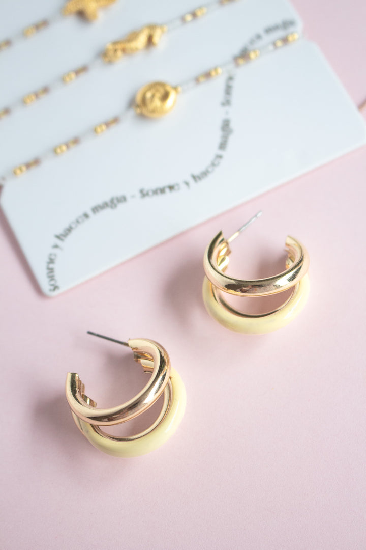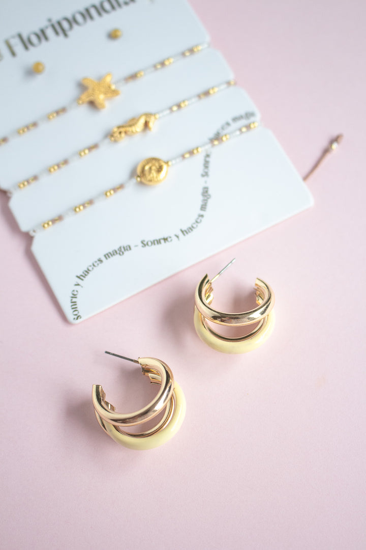 - Candongas elaboradas en Bronce con baño de oro de 24k y resina.