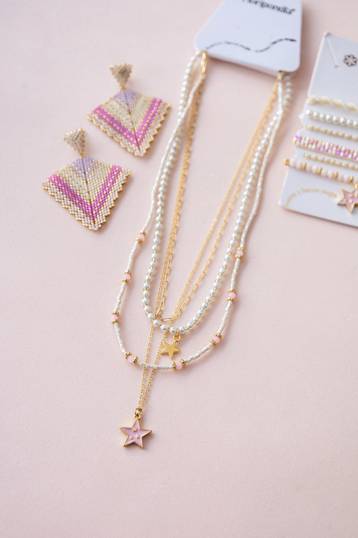 - Set de cadena en Oro Goldfilled Brasilero con baño en oro de 24k elaborado en miyuki japones,balines y perlas.