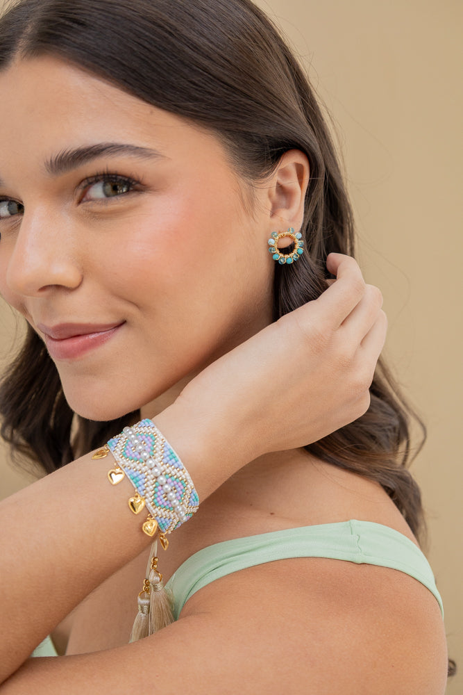 - El combo incluye 1 par de aretes tejidos y pulsera tejida. (Como se ve en la foto).