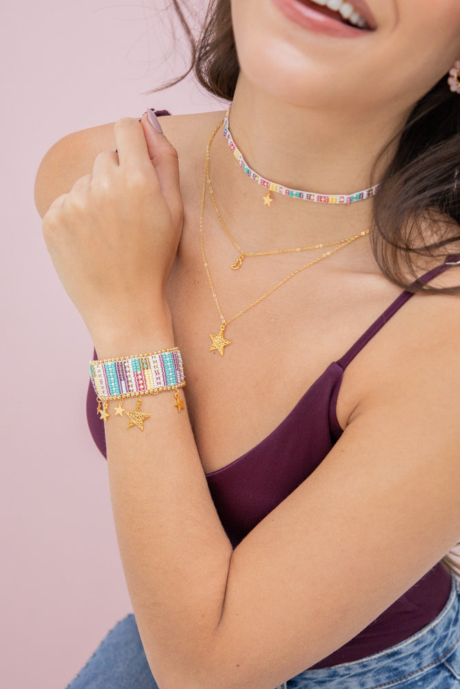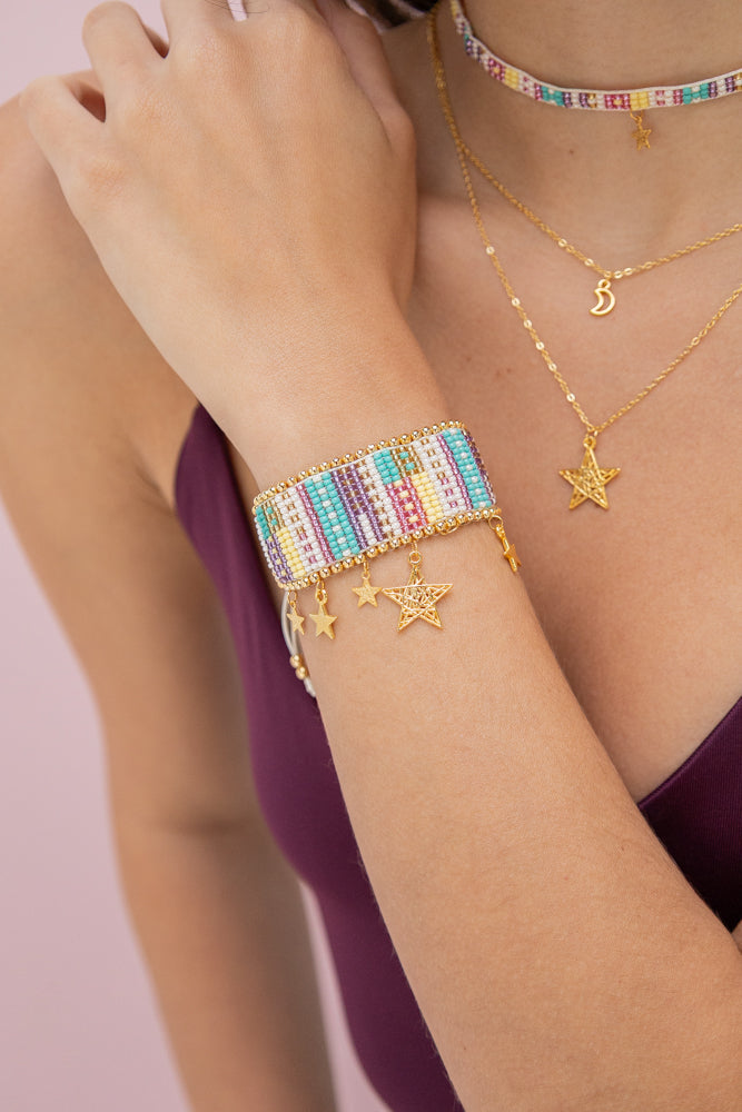 También trabajamos con piedras naturales (como ágata, jade, amatista, cuarzo, turquesa y ojo de tigre), mostacillas checas y Miyuki japonés, reflejando nuestro ADN colorido, artesanal y de alta calidad ✨