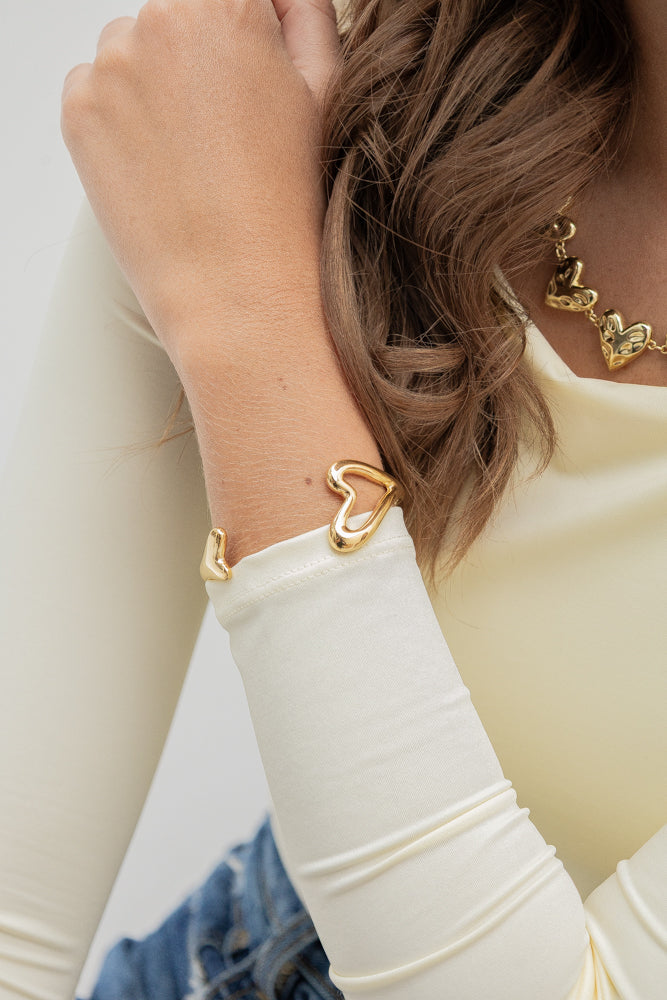 - Incluye: 1 brazalete dorado doble corazón.