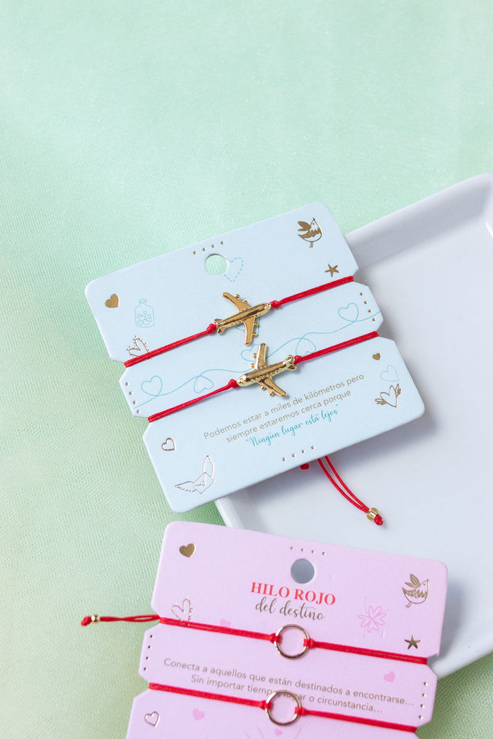 - Dúo de pulseras en hilo ajustables con nudo corredizo, dijes en oro Golfilled.