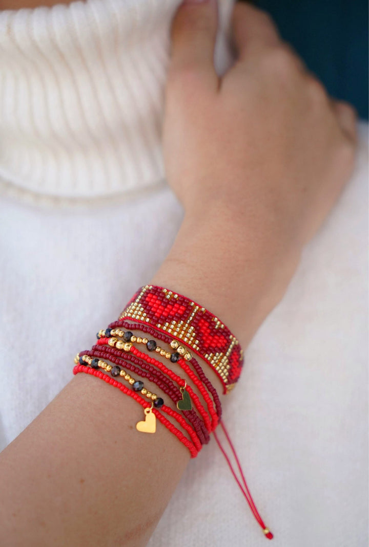 Pulsera tejida en mostacilla checa con balines en acero inoxidable.
