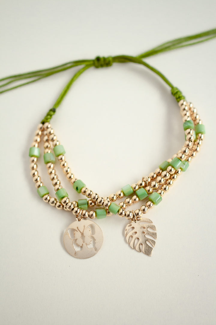 - Incluye: 1 sola pulsera verde mariposa hoja.