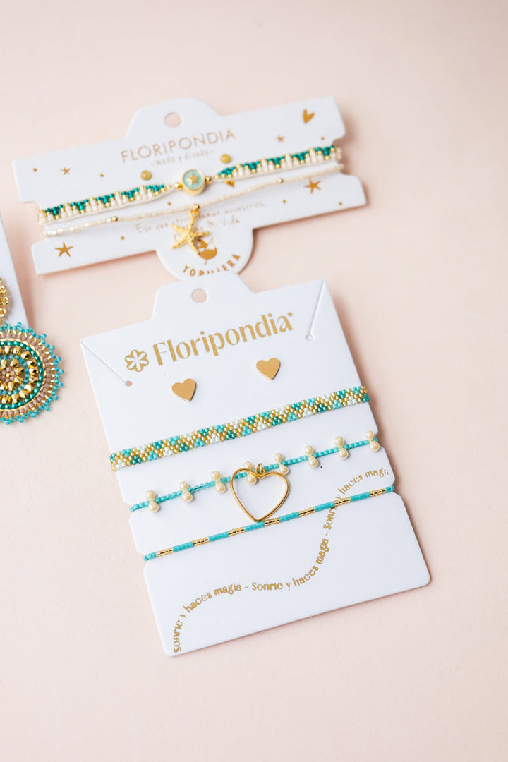 - Set de pulsera tejida en miyuki japones con nudo corredizo.