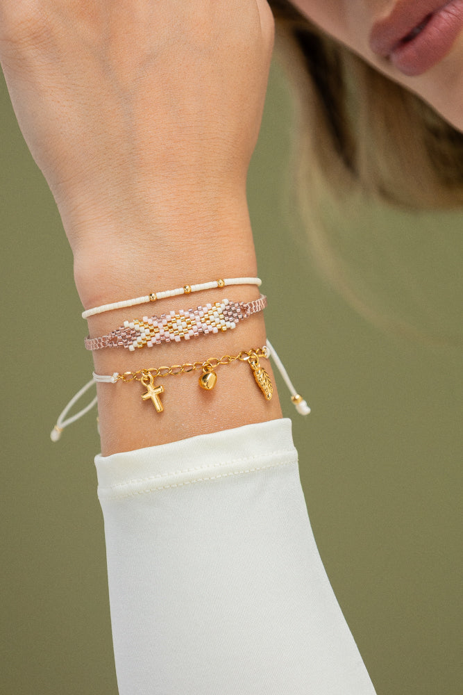 - Set de pulsera tejida en Miyuki japones con nudo corredizo.