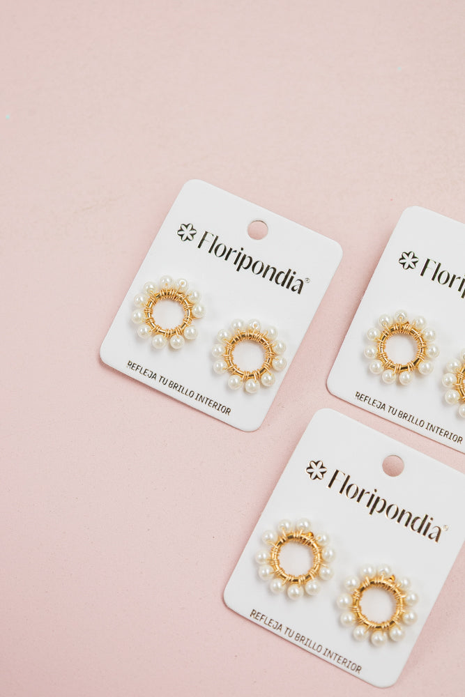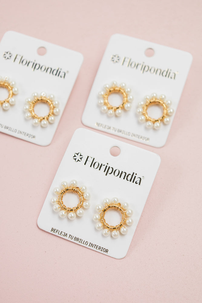 - Topos elaborados en Bronce con baño de oro de 24k con perlas.